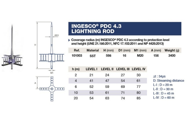 - Kim thu sét Ingesco PDC 4.3(kim thu lôi Ingesco)