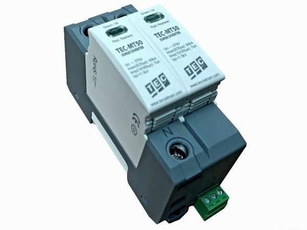 - Chống Sét 1 Pha, 2 Cực TEC MT50 có cấu tạo nhỏ gọn như 02 con Át tép. Dễ dàng lắp đặt trong tủ điện phân phối.
